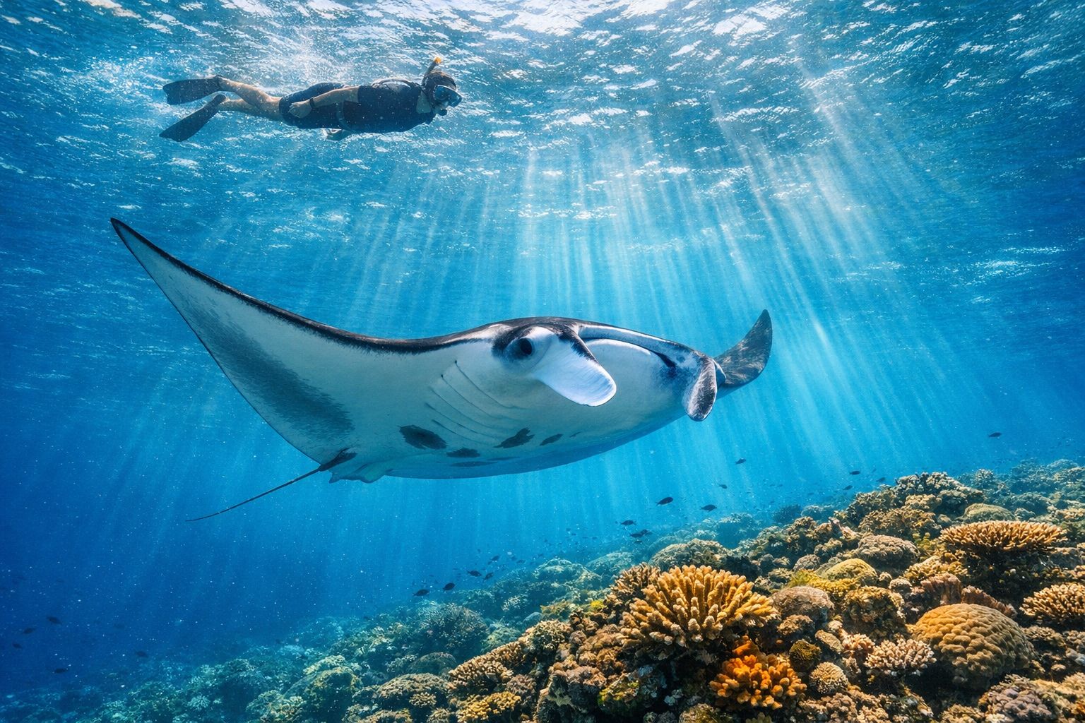Step from your overwater villa straight into a warm turquoise lagoon where sea turtles and reef sharks glide beneath you. Your days drift between deserted sandbank picnics, dawn dolphin cruises, and candlelit dinners under a canopy of stars with zero light pollution.